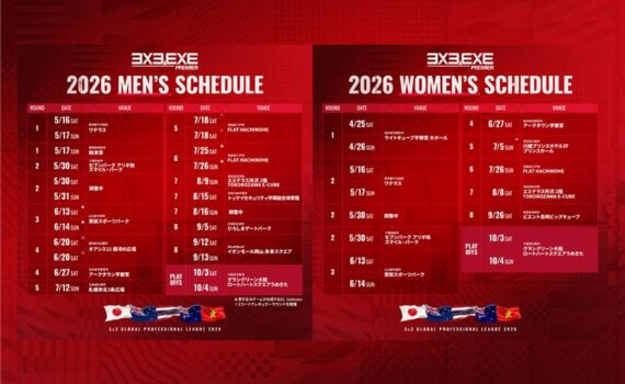 3人制バスケのグローバルプロリーグ『3x3.EXE PREMIER』2026シーズンに参戦する日本の全チームが確定しましたので、お知らせいたします。1月26日(月)に男子5チーム、女子3チーム 計8チームの新規加盟チーム...