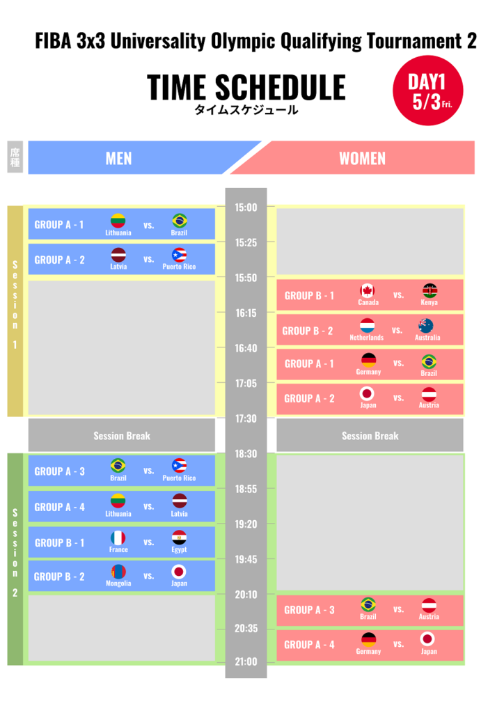 チケットはいずれも日本の試合が見られる形で販売されます。販売開始は4月1日(月)10:00から。日本史上初開催となるオリンピック予選で、世界と戦う3x3日本代表を応援しよう!
