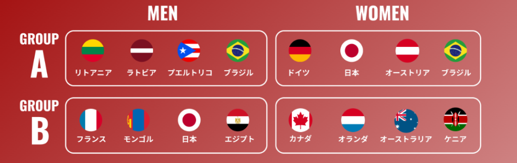本オリンピック予選はすでにグループ予選の出場国と組み合わせが決定しており、男子:リトアニア(3)、ラトビア(9/東京五輪金メダル)、プエルトリコ(13)、ブラジル(39)がグループA、フランス(6)、モンゴル(7)、日本(15)、エジプト(21)がグループB。女子はドイツ(4)、日本(10)、オーストリア(17)、ブラジル(50)がグループA、カナダ(5)、オランダ(8)、オーストラリア(23)、ケニア(24)がグループB。