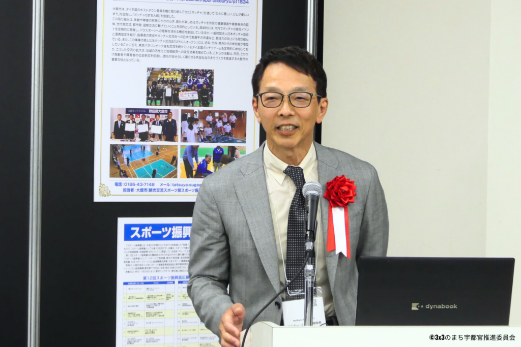 なお、11月26日(水)には東京ビッグサイトにて表彰式が行われ、宇都宮市魅力創造部 部長の手塚直毅が登壇。大会開催の経緯や概要のほか、宇都宮市における3x3推進の取組についてスピーチをさせていただきました。