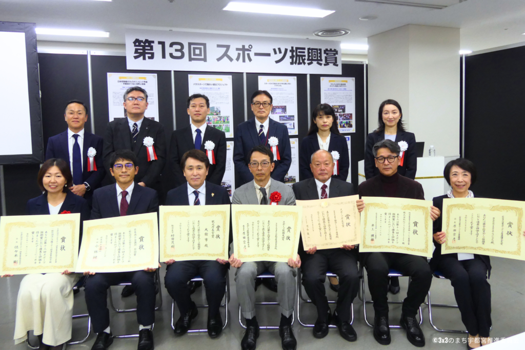 「3x3のまち宇都宮推進委員会」は、2024年に日本で初めて宇都宮市で3x3オリンピック予選大会(FIBA 3x3 Universality Olympic Qualifying Tournament 2 (UOQT2))を開催した実績が認められ、応募総数41件の作品の中から最も優れた作品である「スポーツ振興大賞」を受賞いたしました。